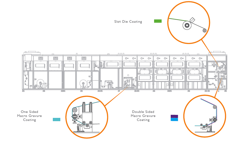 Various types of dryers available according to the coating material and process conditions (hot air, IR Ceramic and UV Cure)